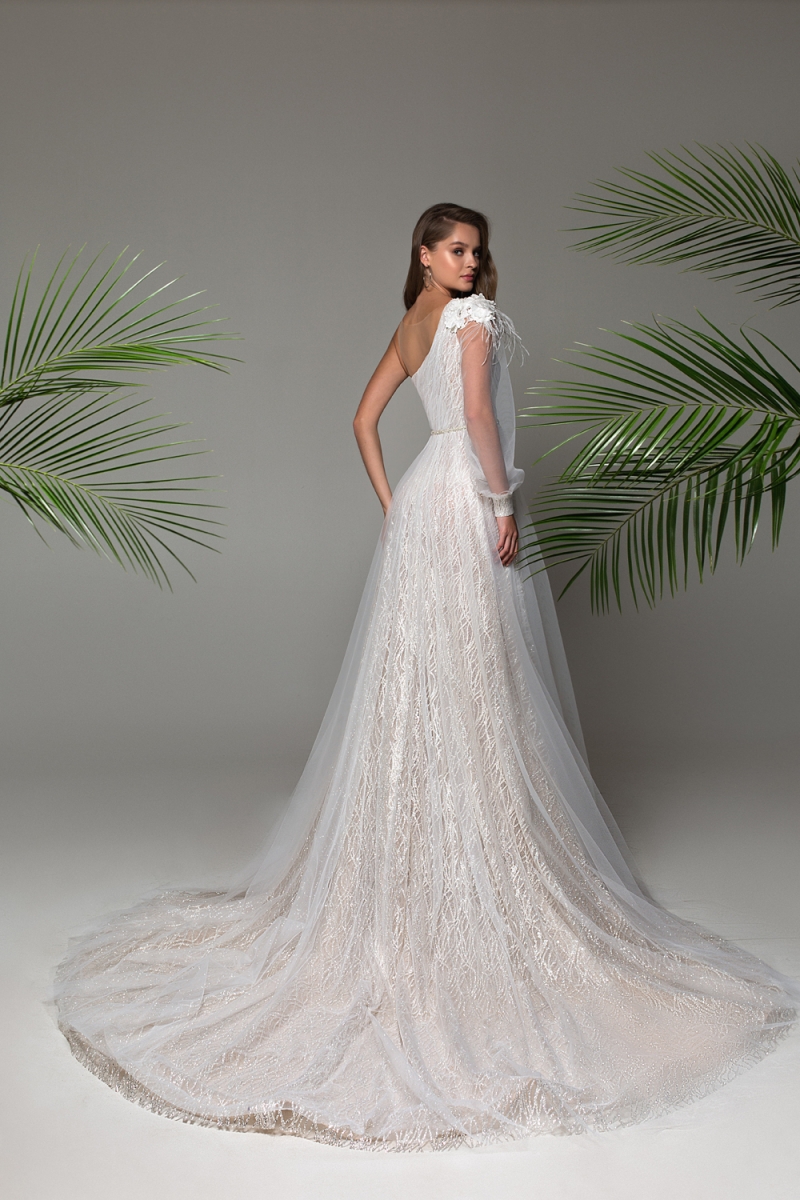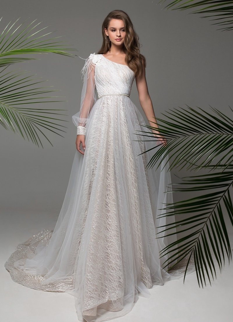 Мечтаете о по-настоящему волшебном образе невесты? Обратите внимание на модель “Alteya” – великолепное блестящее свадебное платье с изящным длинным шлейфом. Легкий многослойный фатин создает воздушный силуэт, а переливающееся сияние ткани подчеркнут ваш неповторимый стиль.