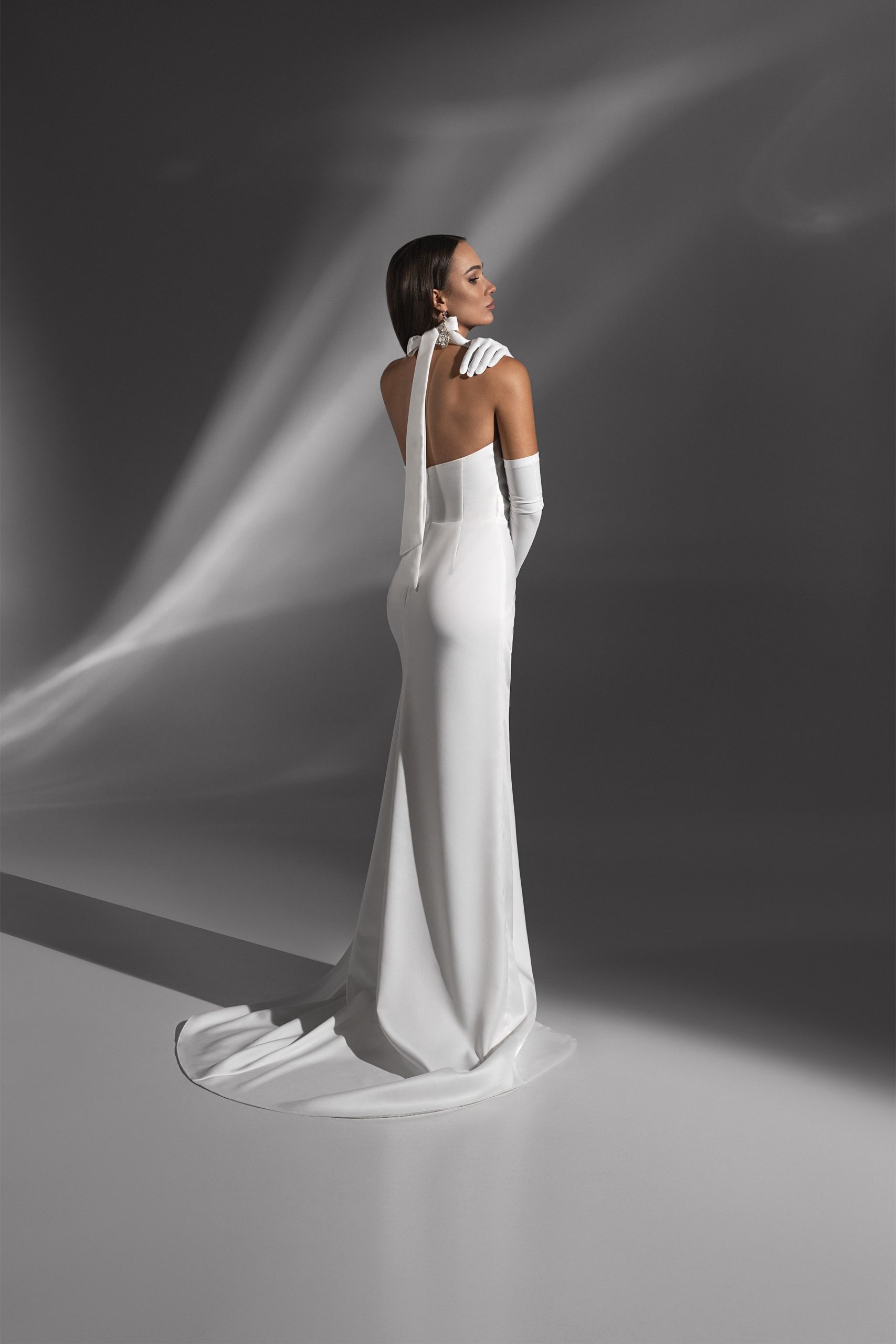 Ищете стильное и запоминающееся свадебное платье? Обратите внимание на модель “Stella” из коллекции “Storia” — элегантное и дерзкое одновременно. Платье выполнено из гладкого атласа, подчеркивает фигуру и идеально садится по силуэту. Открытые плечи, изысканная открытая спина и пикантный разрез делают образ по-настоящему эффектным. Дополняет модель воздушный шлейф, придающий движениям грациозность и легкость.